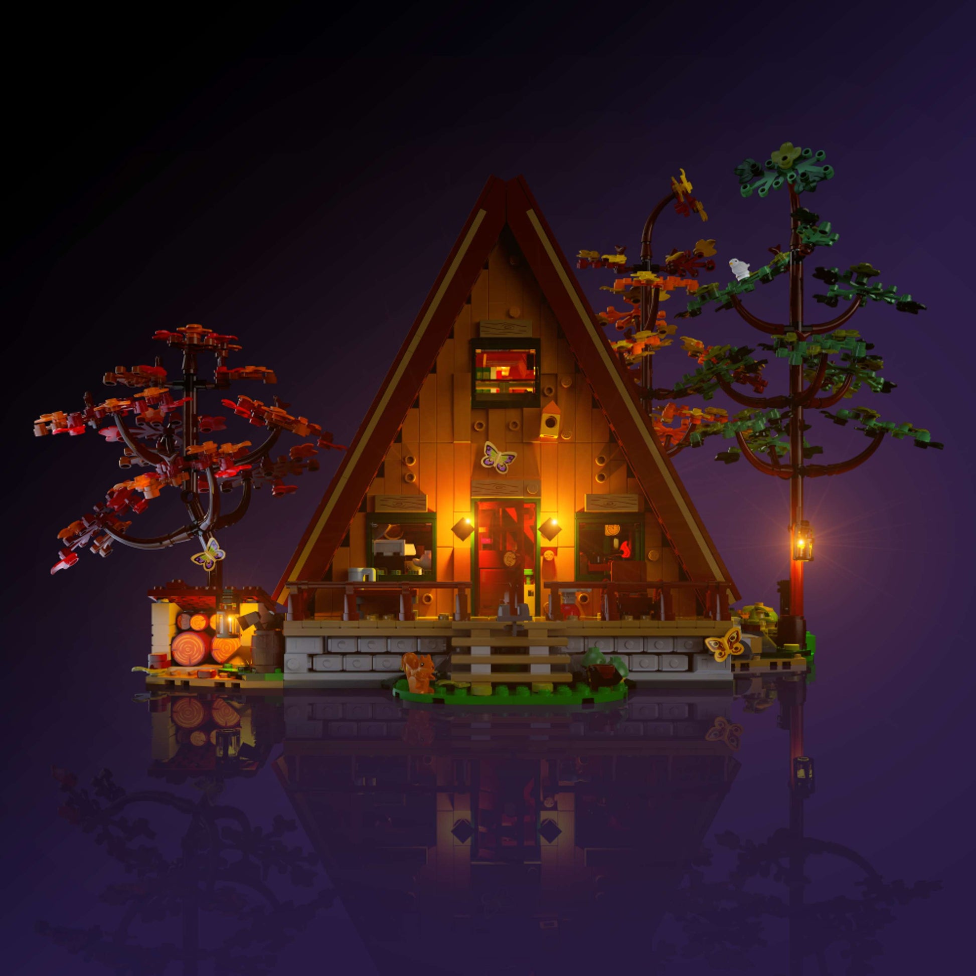 Answer the call of the great outdoors when you light up your LEGO® A-Frame Cabin with Light My Bricks™. Our light kit has been carefully designed to bring the idyllic rural scene to life and highlight all the charming details of the picturesque cabin, both inside and out.
