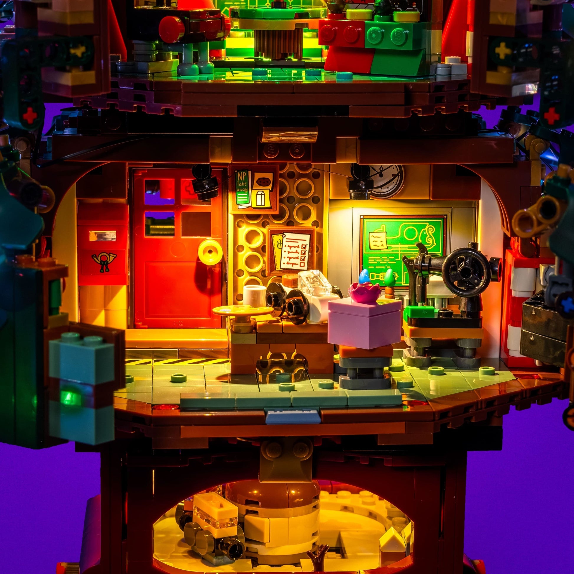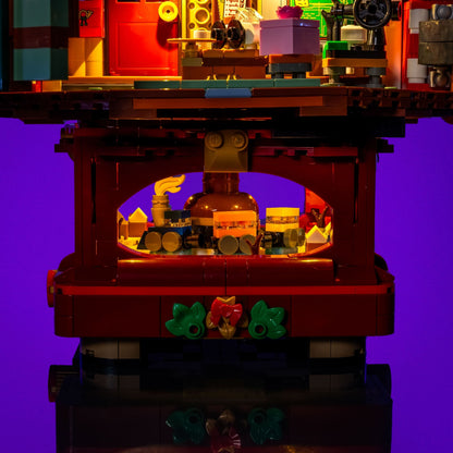 The base glows with a mix of warm white and yellow tones, adding a cosy ambience, while the rotating mini tree and colourful upper rooms bring playful detail to every level. With Flux Touch Plates for easy section removal, this light kit keeps your tree fully functional and radiant—perfect for spreading Christmas cheer all season long.