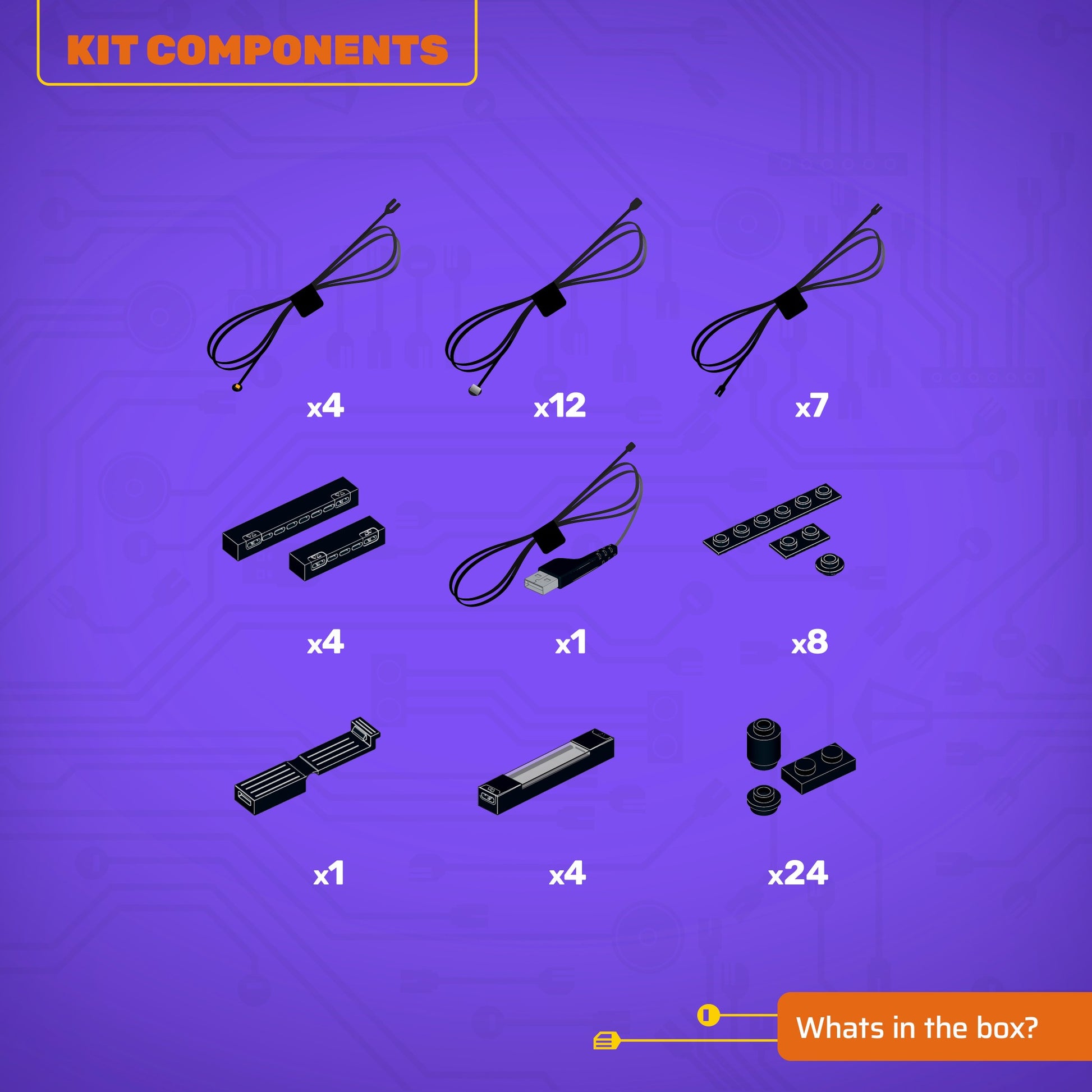 • All component casing and housing has been designed to connect seamlessly onto the LEGO stud system, with LEGO dimensional parts.