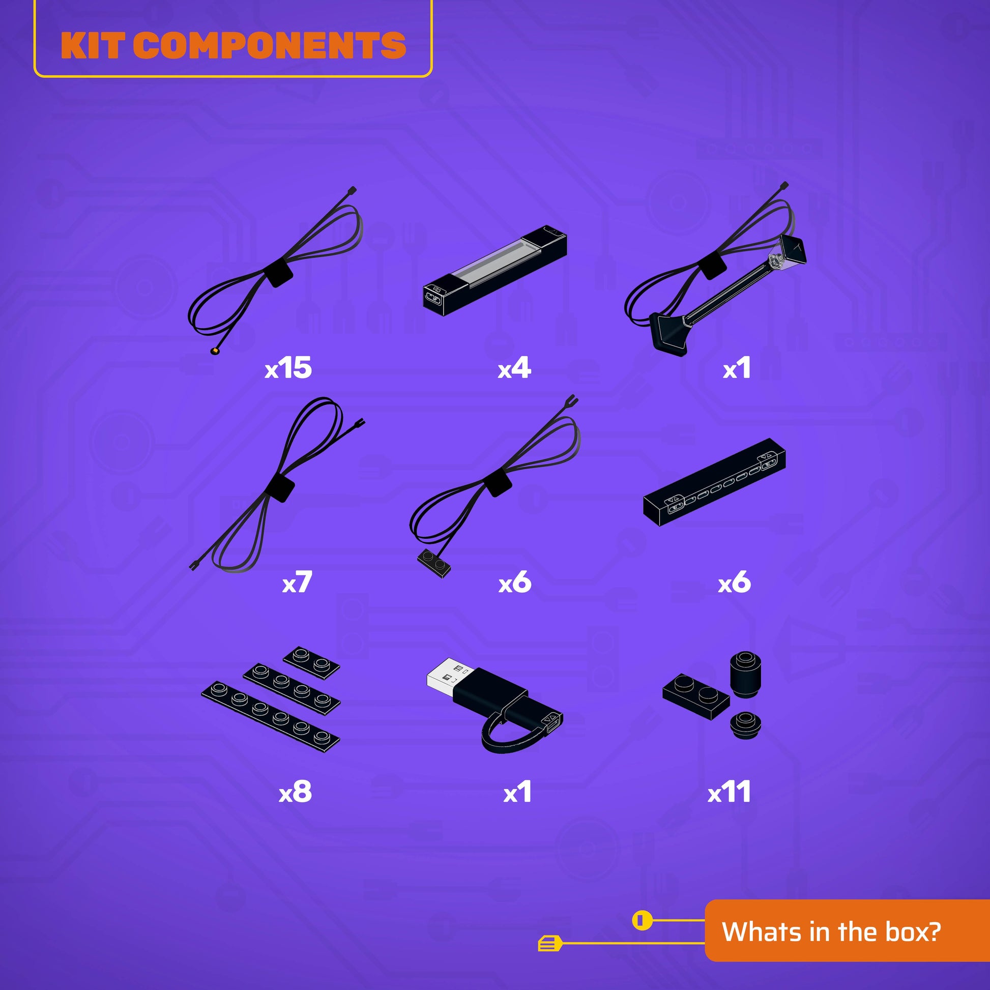 • All component casing and housing has been designed to connect seamlessly onto the LEGO stud system, with LEGO dimensional parts.