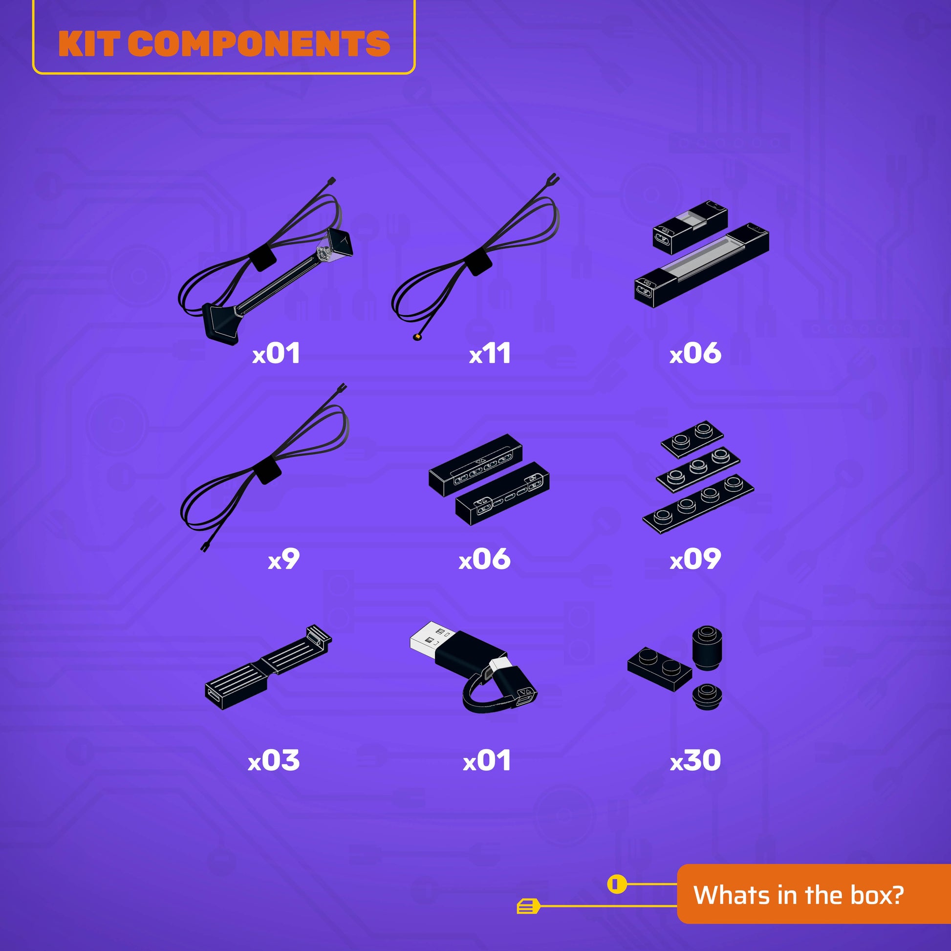 • All component casing and housing has been designed to connect seamlessly onto the LEGO stud system, with LEGO dimensional parts.