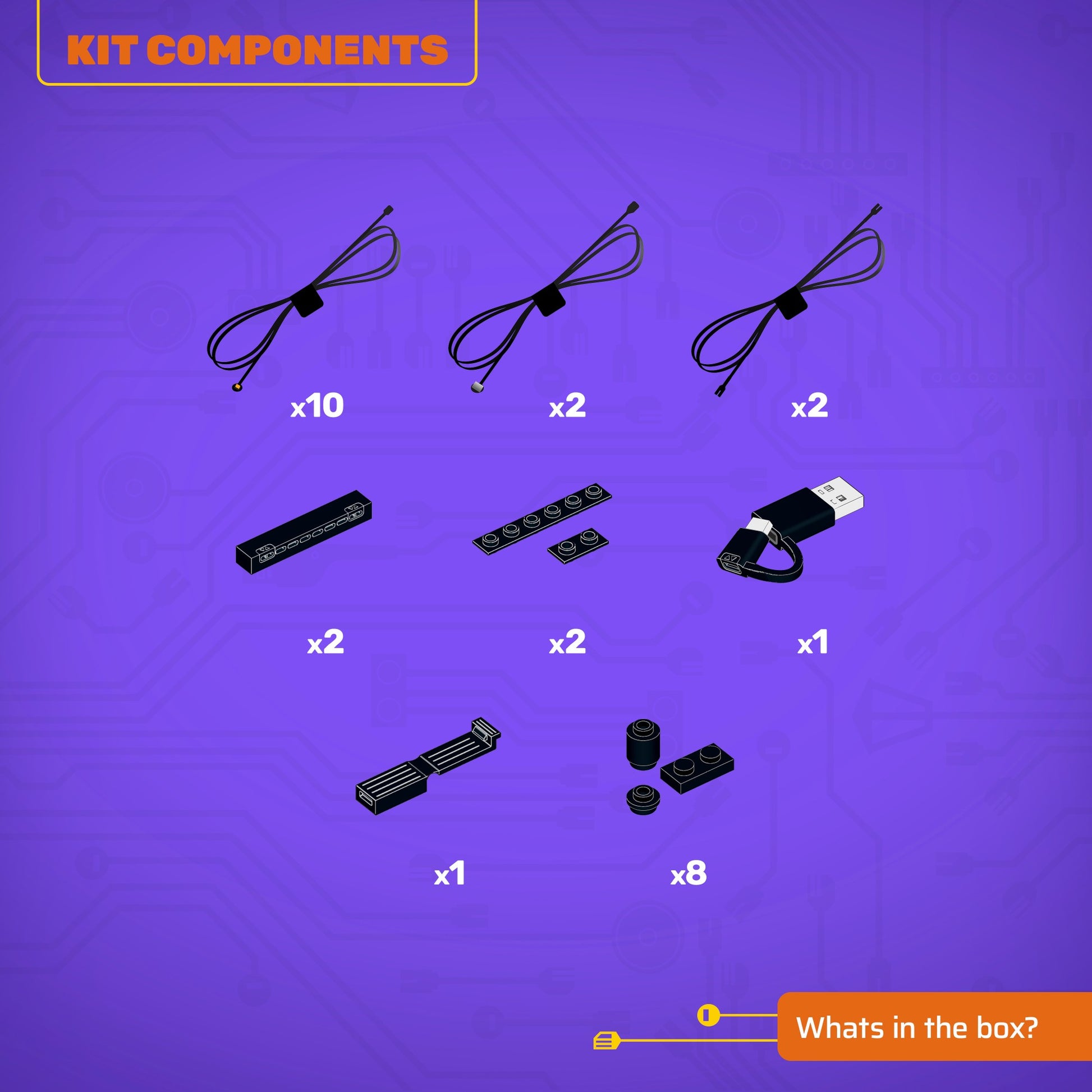 • All component casing and housing has been designed to connect seamlessly onto the LEGO stud system, with LEGO dimensional parts.