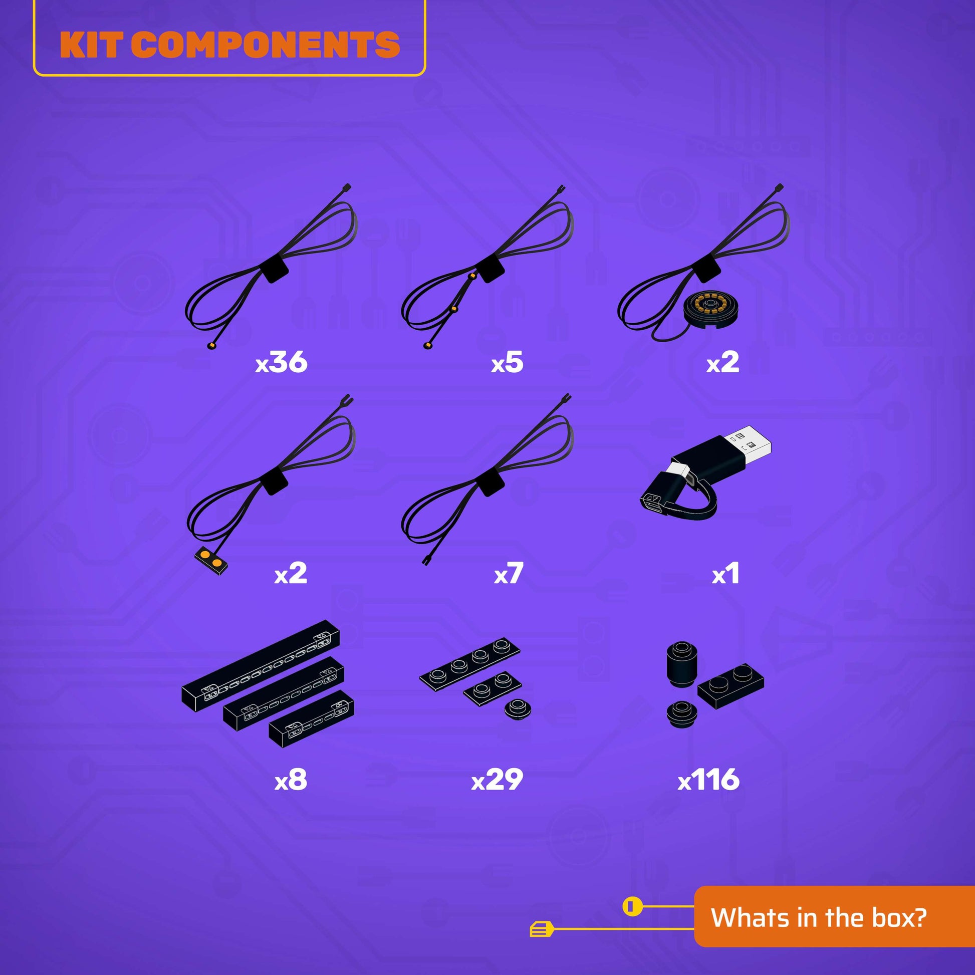• All component casing and housing has been designed to connect seamlessly onto the LEGO stud system, with LEGO dimensional parts.