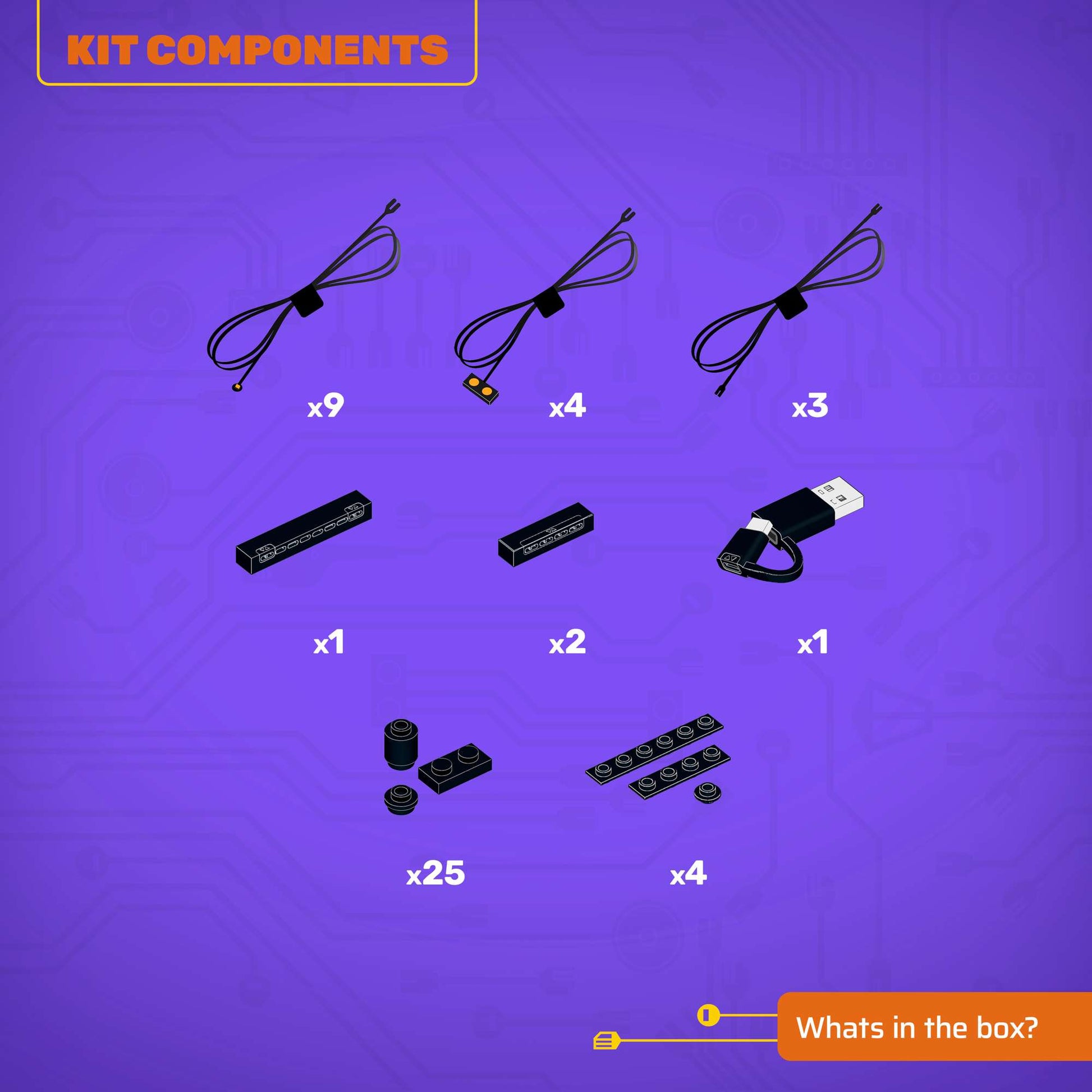 • All component casing and housing has been designed to connect seamlessly onto the LEGO stud system, with LEGO dimensional parts.