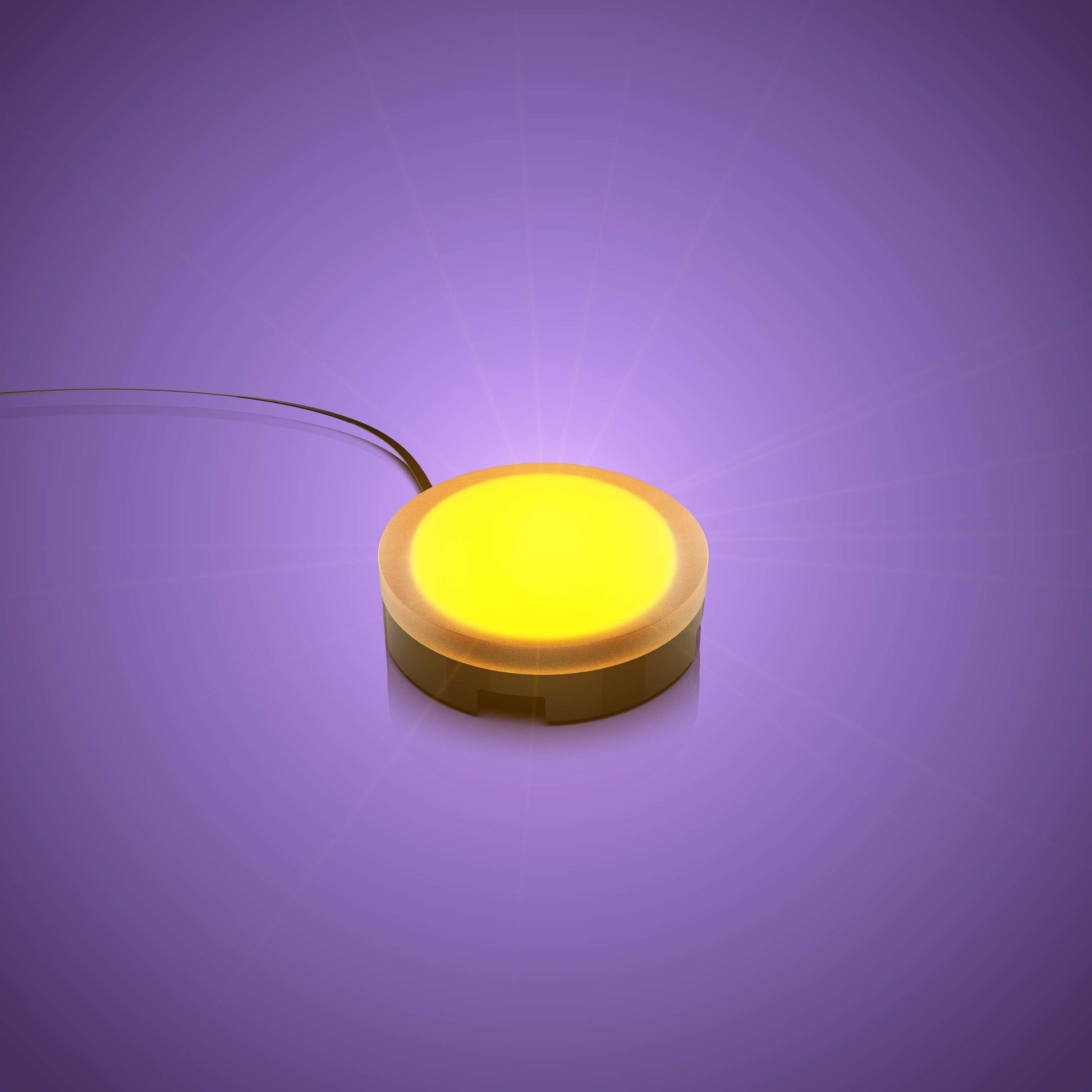 Introducing the Solar Light (Orange) - the ultimate spotlight for your LEGO creations! This large, circular light is powered by 12 LEDs and is covered with a frost Orange solar cap, making it perfect for use as a powerful headlight or engine booster. With versatile connection options, the Solar Light can snap onto 1x1 or 3x3 stud patterns or attach to the underside of plates with our Tether system. This light is also available in a range of other colours, including Cool White, Warm White and Blue. Our Solar Light is 23.8 x 6mm and comes in a pack of 2.