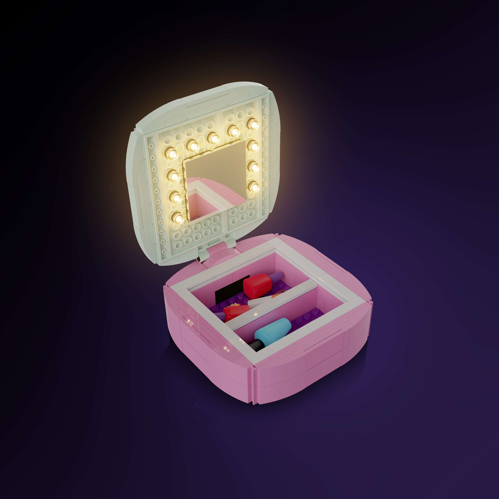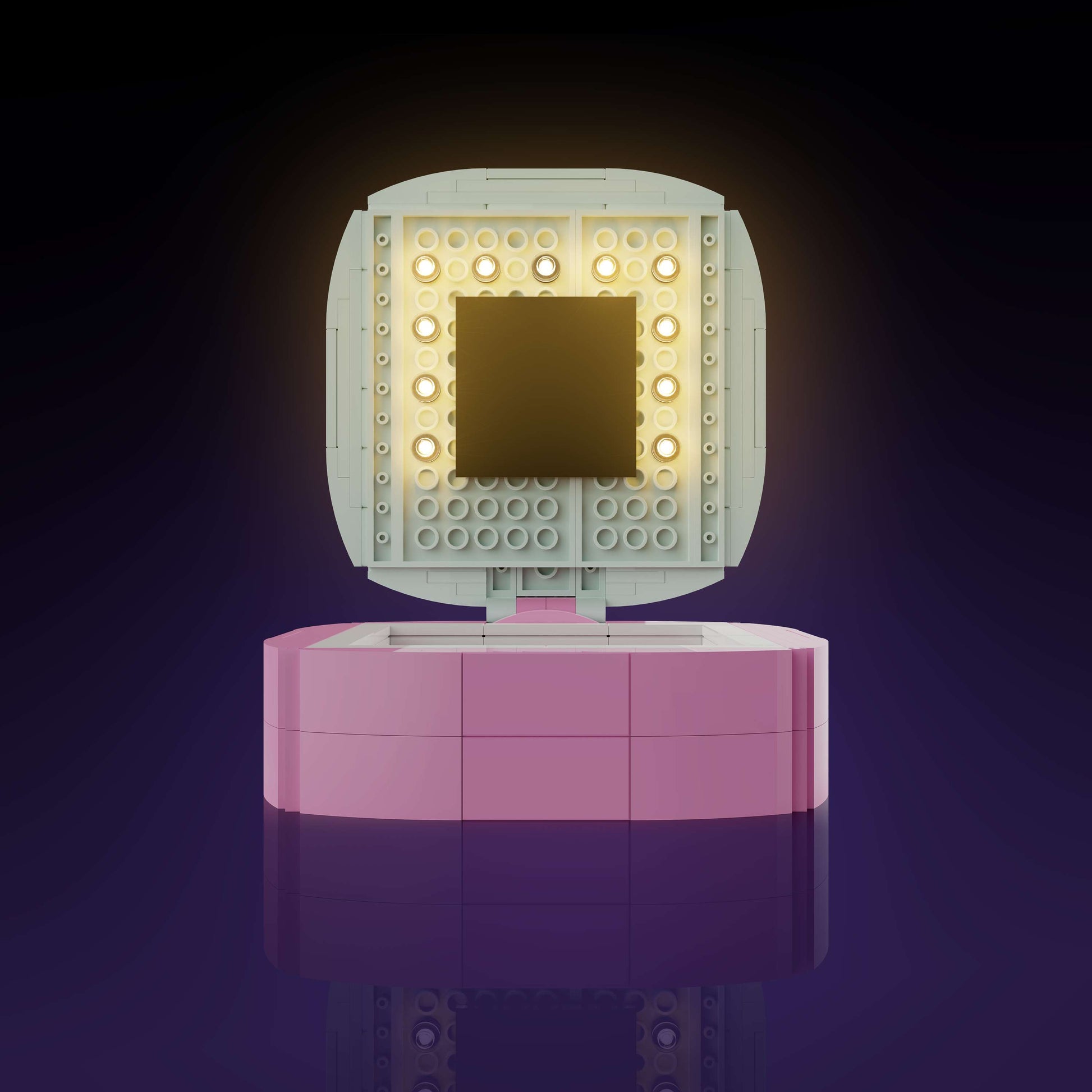 The Light My Bricks™ Jewellery Box in pastel pink has a stunning pastel aesthetic, perfect for jewellery lovers. Designed with a customisable movable separator, it’s tailored to organising your jewellery and keepsakes effortlessly. Vanity-style warm white string light frames the mirror, providing a Hollywood-inspired glow that elevates your dresser into a glamorous centrepiece. Powered with our built in Power Brick, you’ll have the ultimate portability and elegance wherever you go. The flux belt offers continuous lighting, ensuring your jewellery box is beautifully lit at all times. An essential for any jewellery enthusiast, this charming and functional display piece brings creativity and next-level elegance to your collection.