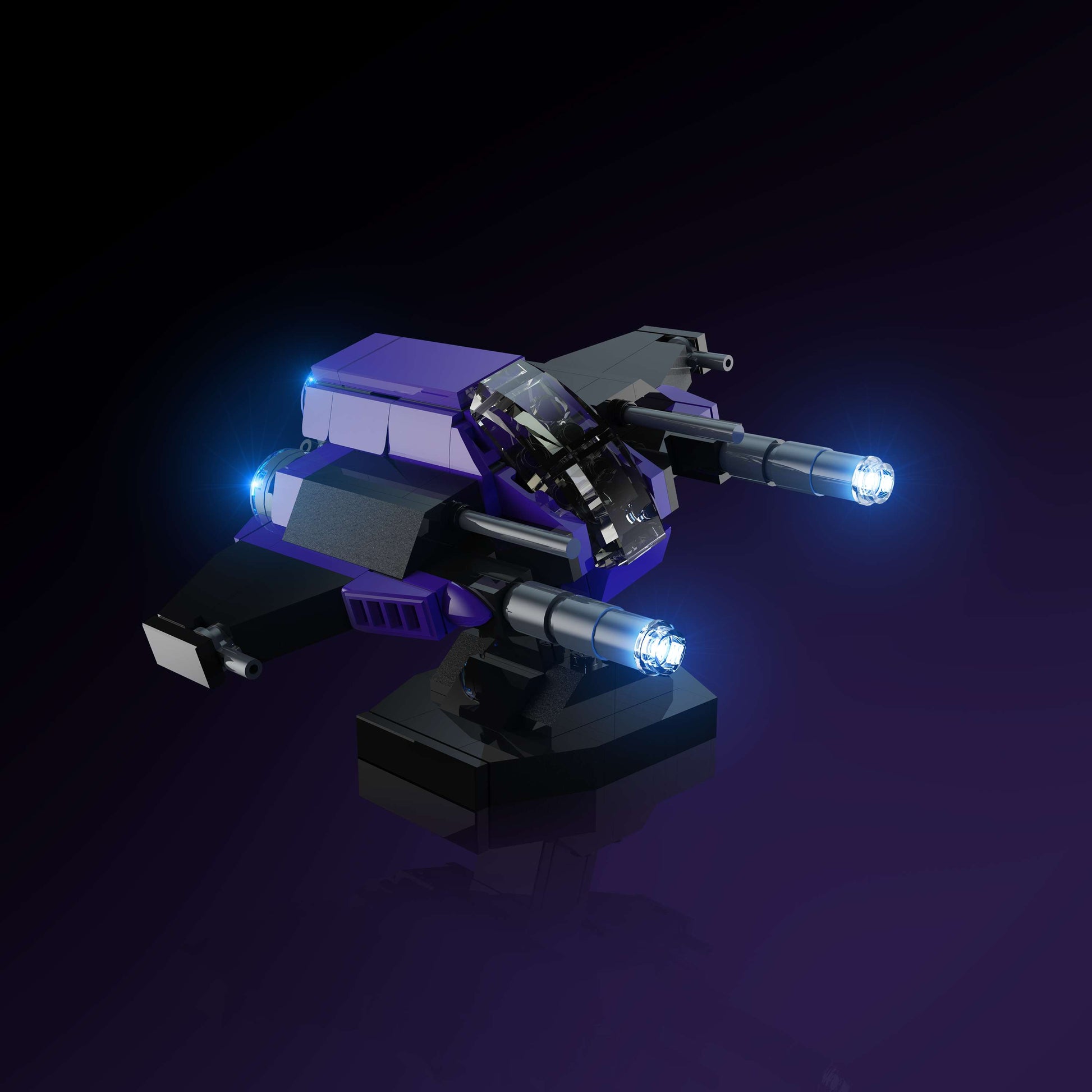 The Light My Bricks™ Galaxy Glider combines buildable creativity with seamlessly installed lighting technology. Featuring a striking purple and black exterior, the galaxy glider is ready for the ultimate space battle or as a central showpiece of your display. Powered with our built in Power Brick for ultimate Light and Play with now connecting cables. Experience the ultimate swoosh-ability all while the Cool White Headlights and powerful Blue-lit thrusters are illuminated. Complete with a displayable base and functional landing gear, this is the ideal kit for enthusiasts and experts alike.